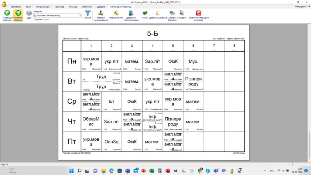Розклад уроків