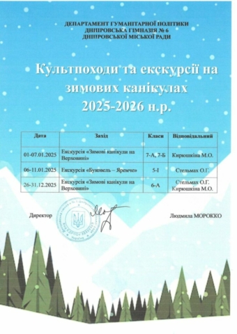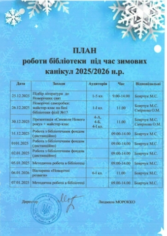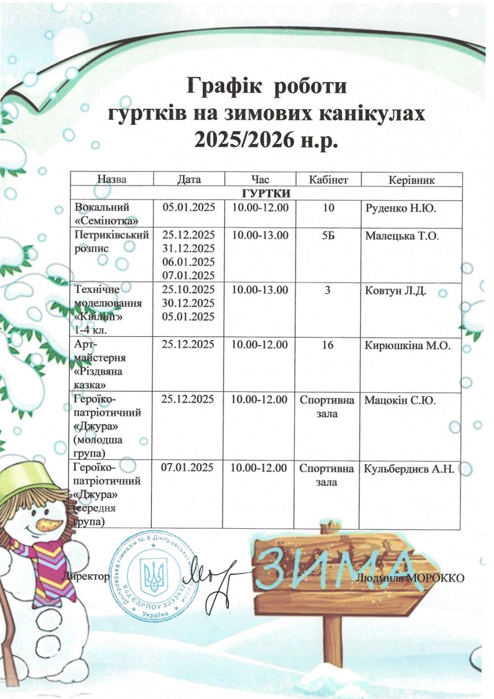 ЗИМОВІ КАНІКУЛИ — 2025\2026